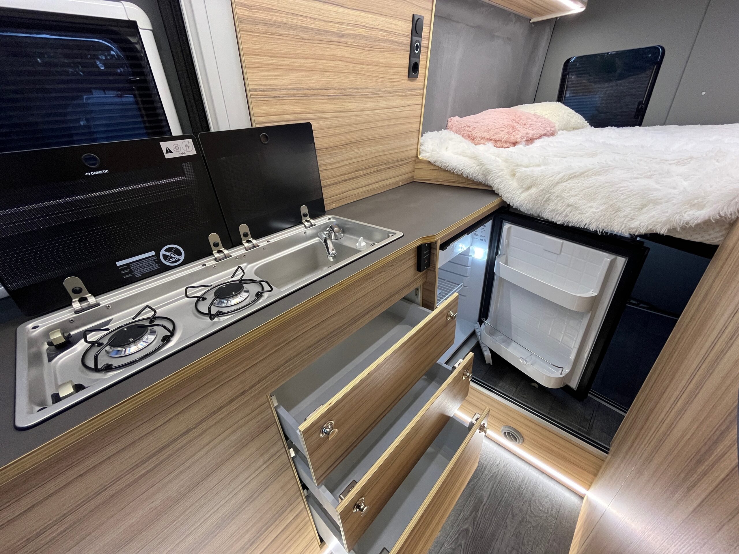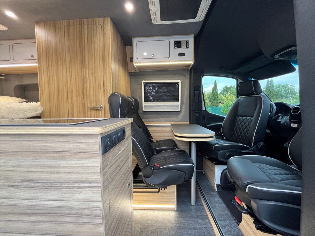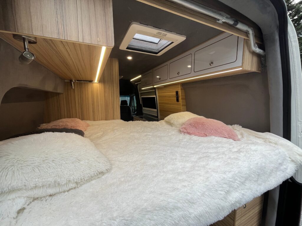 Kamper premium z dużym łóżkiem i komfortowym układem wnętrza, przygotowany dla osób, które cenią wygodę odpoczynku i funkcjonalność zabudowy. Ales Grand Bed to realizacja zaprojektowana z myślą o maksymalnym komforcie podczas podróży i noclegu. Przemyślany układ, nowoczesna zabudowa i praktyczne rozwiązania sprawiają, że ten kamper na zamówienie dobrze odpowiada na potrzeby użytkowników, którzy szukają przestrzeni, wygody i wysokiej jakości wykonania. To propozycja dla osób, które chcą podróżować bez kompromisów w zakresie komfortu.