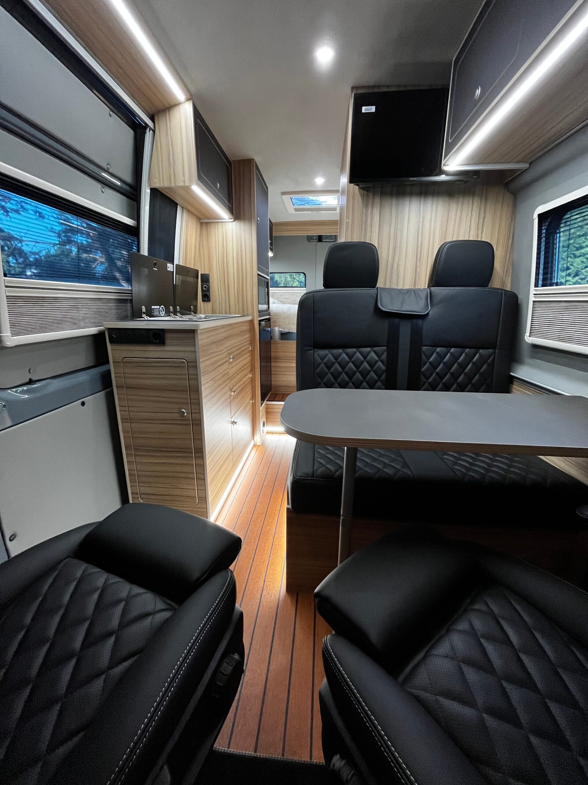 Kamper premium o stonowanej, nowoczesnej stylistyce, stworzony dla osób, które cenią wygodę, przestrzeń i dopracowane rozwiązania w podróży. Ales Grey Nomad to realizacja łącząca minimalistyczny wygląd nadwozia z funkcjonalnym układem wnętrza i komfortową zabudową kamperową. Szara kolorystyka, spójny projekt i praktyczne wyposażenie sprawiają, że ten kamper na zamówienie świetnie sprawdza się zarówno podczas weekendowych wyjazdów, jak i dłuższych podróży. To model dla użytkowników, którzy szukają eleganckiego i uniwersalnego kampera premium.